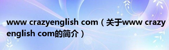 大家好,www crazyenglish com,關于www crazyenglish com的簡介很多人還不知道,現在讓我們一起來看看吧!