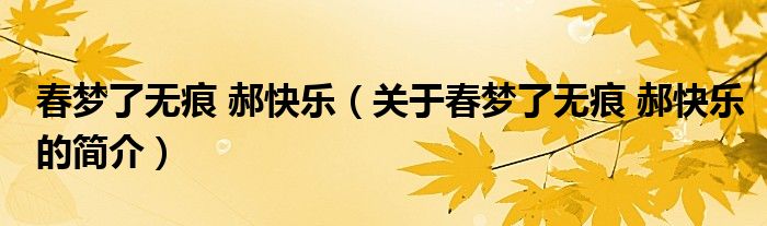 本文關于春夢了無痕 郝快樂的簡介就講解完畢,希望對大家有所幫助。