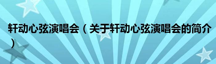 本文關于軒動心弦演唱會的簡介就講解完畢,希望對大家有所幫助。