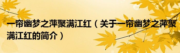大家好,一簾幽夢之萍聚滿江紅,關于一簾幽夢之萍聚滿江紅的簡介很多人還不知道,現在讓我們一起來看看吧!
