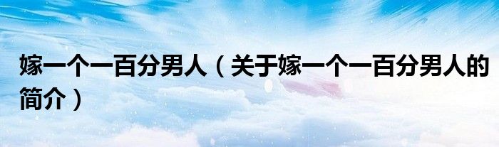 大家好,嫁一個一百分男人,關于嫁一個一百分男人的簡介很多人還不知道,現(xiàn)在讓我們一起來看看吧!