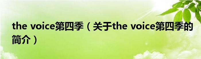 本文關于the voice第四季的簡介就講解完畢,希望對大家有所幫助。