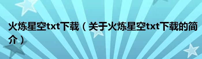 本文關于火煉星空txt下載的簡介就講解完畢,希望對大家有所幫助。