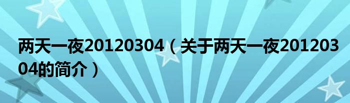 大家好,兩天一夜20120304,關于兩天一夜20120304的簡介很多人還不知道,現在讓我們一起來看看吧!