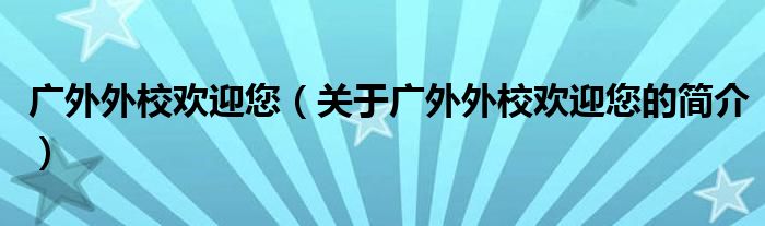 本文關于廣外外校歡迎您的簡介就講解完畢,希望對大家有所幫助。