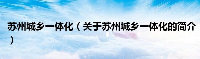 本文關于蘇州城鄉一體化的簡介就講解完畢,希望對大家有所幫助。