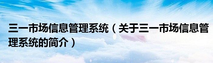 本文關于三一市場信息管理系統的簡介就講解完畢,希望對大家有所幫助。