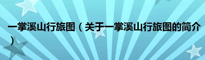 大家好,一掌溪山行旅圖,關(guān)于一掌溪山行旅圖的簡介很多人還不知道,現(xiàn)在讓我們一起來看看吧!