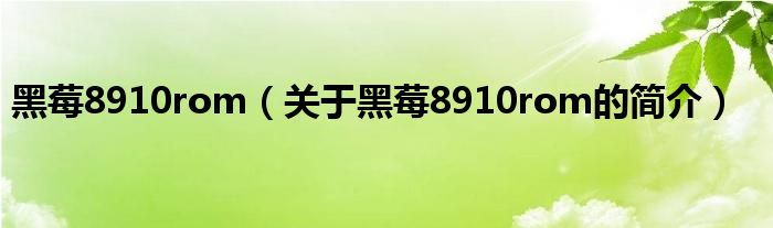 本文關于黑莓8910rom的簡介就講解完畢,希望對大家有所幫助。