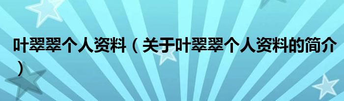 本文關于葉翠翠個人資料的簡介就講解完畢,希望對大家有所幫助。