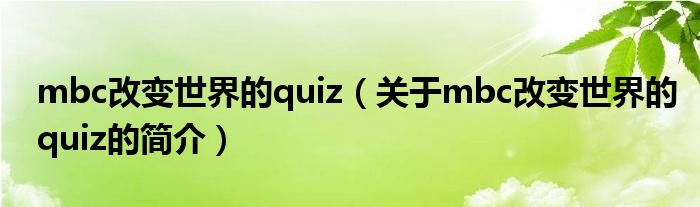 本文關于mbc改變世界的quiz的簡介就講解完畢,希望對大家有所幫助。