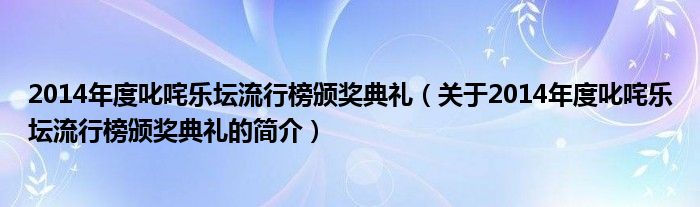 本文關(guān)于2014年度叱咤樂壇流行榜頒獎典禮的簡介就講解完畢,希望對大家有所幫助。