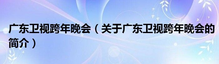 本文關于廣東衛視跨年晚會的簡介就講解完畢,希望對大家有所幫助。