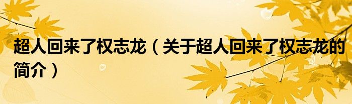 大家好,超人回來了權(quán)志龍,關(guān)于超人回來了權(quán)志龍的簡(jiǎn)介很多人還不知道,現(xiàn)在讓我們一起來看看吧!