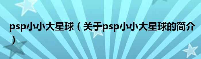 大家好,psp小小大星球,關于psp小小大星球的簡介很多人還不知道,現在讓我們一起來看看吧!