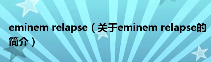 本文關于eminem relapse的簡介就講解完畢,希望對大家有所幫助。