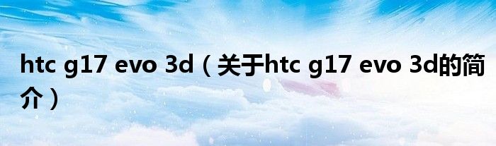 本文關于htc g17 evo 3d的簡介就講解完畢,希望對大家有所幫助。