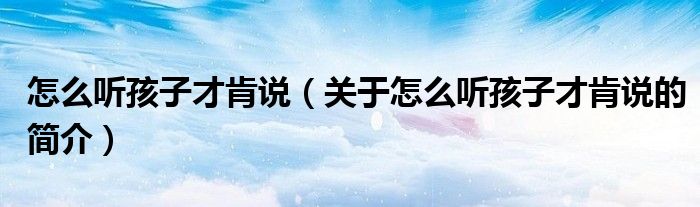 本文關于怎么聽孩子才肯說的簡介就講解完畢,希望對大家有所幫助。