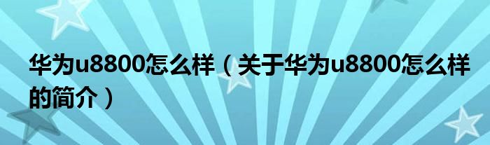 本文關(guān)于華為u8800怎么樣的簡(jiǎn)介就講解完畢,希望對(duì)大家有所幫助。
