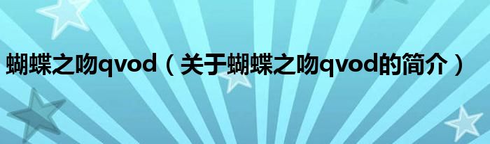大家好,蝴蝶之吻qvod,關于蝴蝶之吻qvod的簡介很多人還不知道,現在讓我們一起來看看吧!