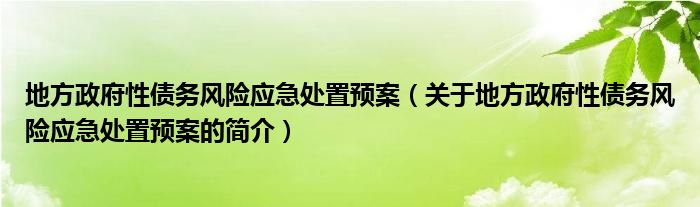 本文關于地方政府性債務風險應急處置預案的簡介就講解完畢,希望對大家有所幫助。