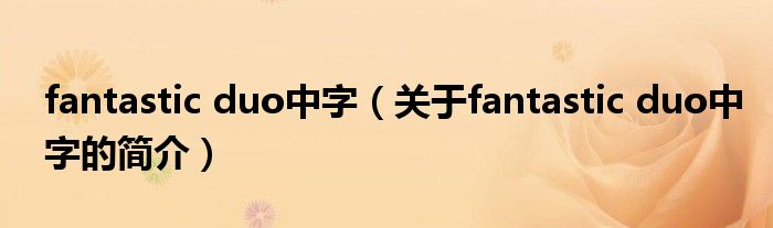 本文關(guān)于fantastic duo中字的簡(jiǎn)介就講解完畢,希望對(duì)大家有所幫助。