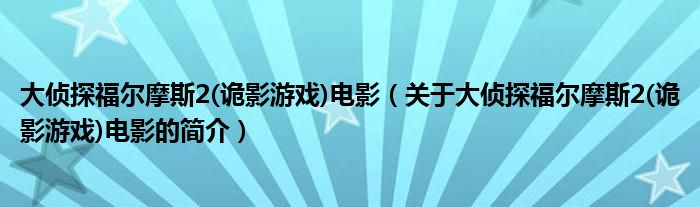 本文關于大偵探福爾摩斯2(詭影游戲)電影的簡介就講解完畢,希望對大家有所幫助。