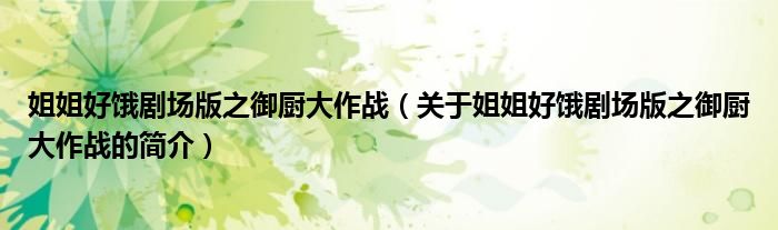 本文關(guān)于姐姐好餓劇場版之御廚大作戰(zhàn)的簡介就講解完畢,希望對大家有所幫助。