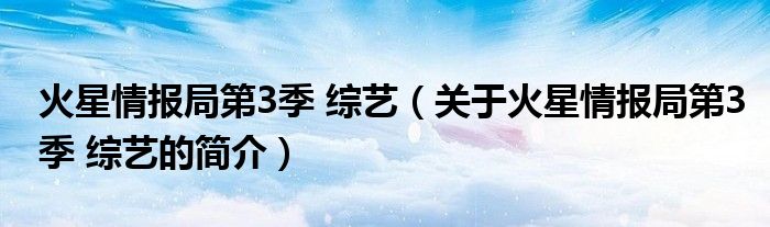 大家好,火星情報局第3季 綜藝,關于火星情報局第3季 綜藝的簡介很多人還不知道,現在讓我們一起來看看吧!
