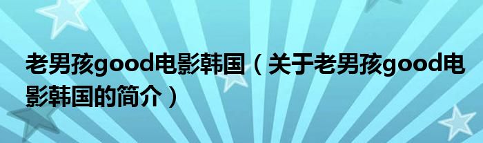 大家好,老男孩good電影韓國,關于老男孩good電影韓國的簡介很多人還不知道,現在讓我們一起來看看吧!