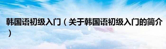 本文關于韓國語初級入門的簡介就講解完畢,希望對大家有所幫助。