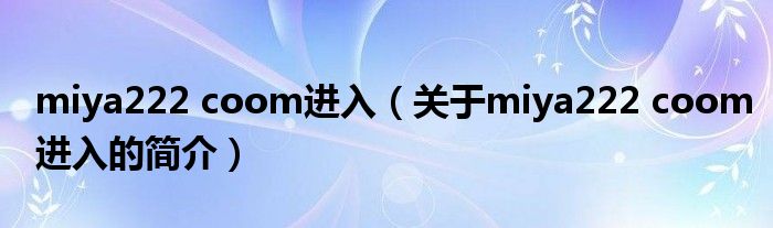 大家好,miya222 coom進入,關于miya222 coom進入的簡介很多人還不知道,現在讓我們一起來看看吧!