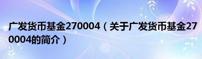 本文關于廣發(fā)貨幣基金270004的簡介就講解完畢,希望對大家有所幫助。