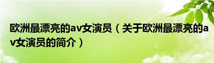 本文關(guān)于歐洲最漂亮的av女演員的簡介就講解完畢,希望對大家有所幫助。