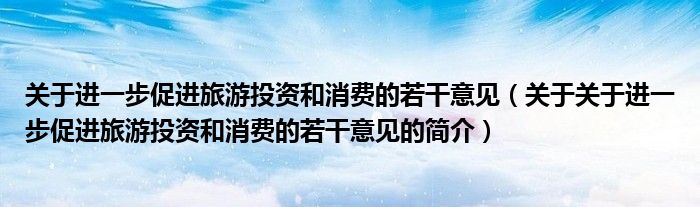 本文關于關于進一步促進旅游投資和消費的若干意見的簡介就講解完畢,希望對大家有所幫助。