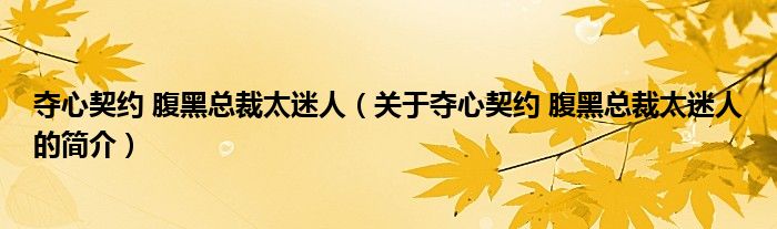 本文關(guān)于奪心契約 腹黑總裁太迷人的簡介就講解完畢,希望對大家有所幫助。