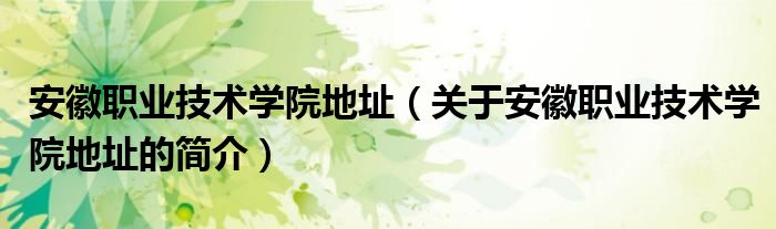本文關(guān)于安徽職業(yè)技術(shù)學(xué)院地址的簡介就講解完畢,希望對大家有所幫助。