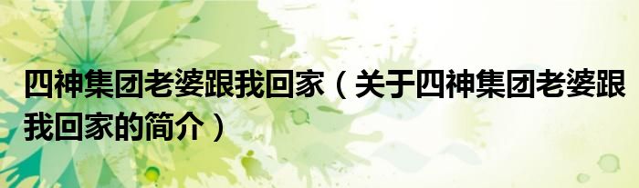 本文關于四神集團老婆跟我回家的簡介就講解完畢,希望對大家有所幫助。