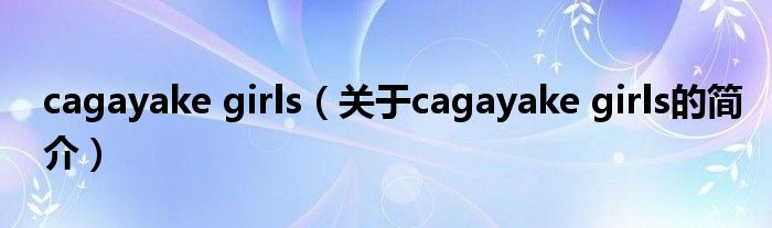 大家好,cagayake girls,關于cagayake girls的簡介很多人還不知道,現在讓我們一起來看看吧!