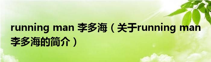 大家好,running man 李多海,關(guān)于running man 李多海的簡介很多人還不知道,現(xiàn)在讓我們一起來看看吧!