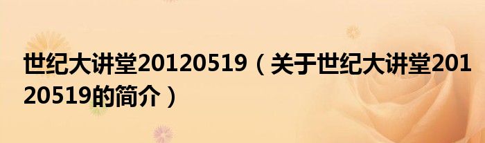 本文關于世紀大講堂20120519的簡介就講解完畢,希望對大家有所幫助。