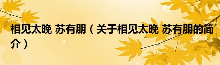 本文關于相見太晚 蘇有朋的簡介就講解完畢,希望對大家有所幫助。