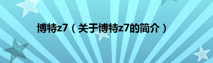 本文關(guān)于博特z7的簡(jiǎn)介就講解完畢,希望對(duì)大家有所幫助。