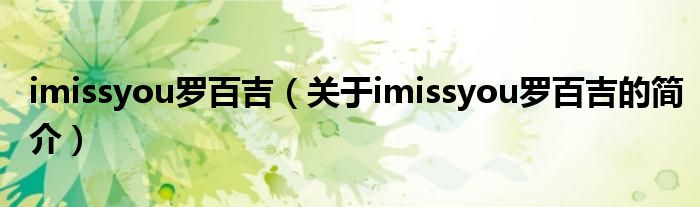 大家好,imissyou羅百吉,關(guān)于imissyou羅百吉的簡介很多人還不知道,現(xiàn)在讓我們一起來看看吧!
