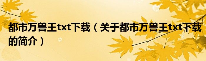本文關于都市萬獸王txt下載的簡介就講解完畢,希望對大家有所幫助。