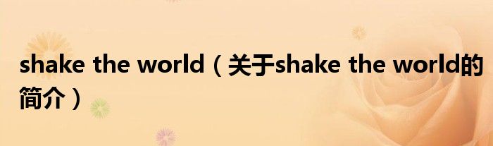 大家好,shake the world,關于shake the world的簡介很多人還不知道,現在讓我們一起來看看吧!