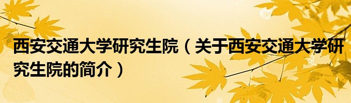 本文關于西安交通大學研究生院的簡介就講解完畢,希望對大家有所幫助。