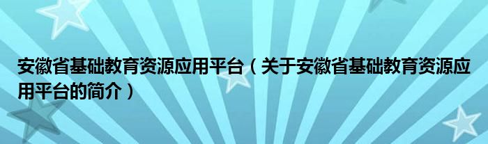 本文關(guān)于安徽省基礎(chǔ)教育資源應(yīng)用平臺的簡介就講解完畢,希望對大家有所幫助。