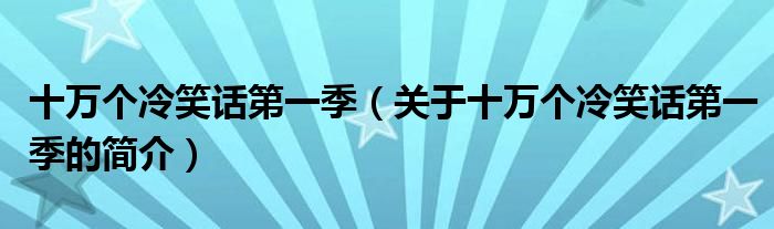 本文關于十萬個冷笑話第一季的簡介就講解完畢,希望對大家有所幫助。