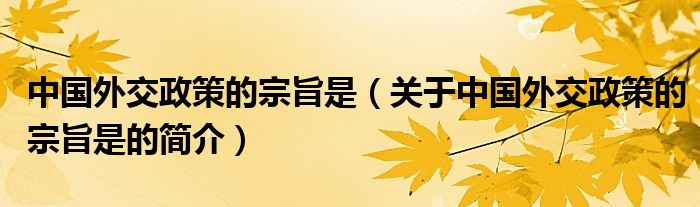 本文關于中國外交政策的宗旨是的簡介就講解完畢,希望對大家有所幫助。